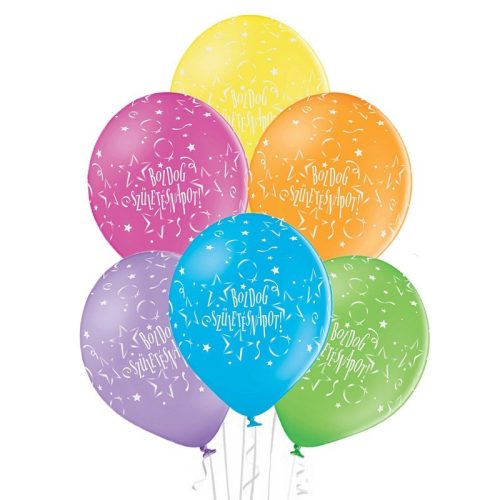 Színes csillagos boldog születésnapot latex lufi 6 db