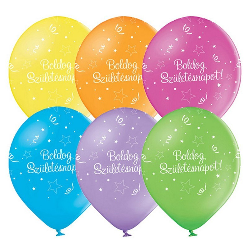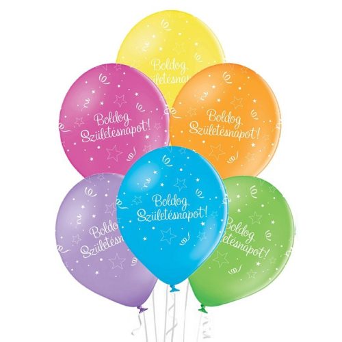 Színes szerpentines boldog születésnapot latex lufi 6 db