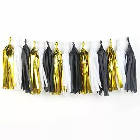 Látványos dekor elem lehet ez fényesen csillogó rojtos girland, amit különböző alkalmakkor használhatunk.