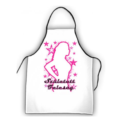 Született feleség feliratos, nyomott mintás kötény. Tökéletes ajándék lánybúcsúra a mennyasszonynak vagy házassági évfordulóra.