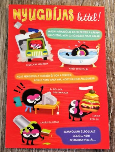 Nyugdíjas életét megkezdő barátunkat, munkatársunkat lephetjük meg ezzel a vicces képeslappal.